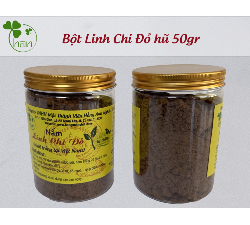 Thành phần: 100% bột nấm linh chi đỏ, nuôi trồng tự nhiên 100%. Không chất phụ gia
