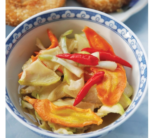 Thành phần: Củ cải trắng, củ cải đỏ, ớt, tỏi, đường, nước mắm/nước tương